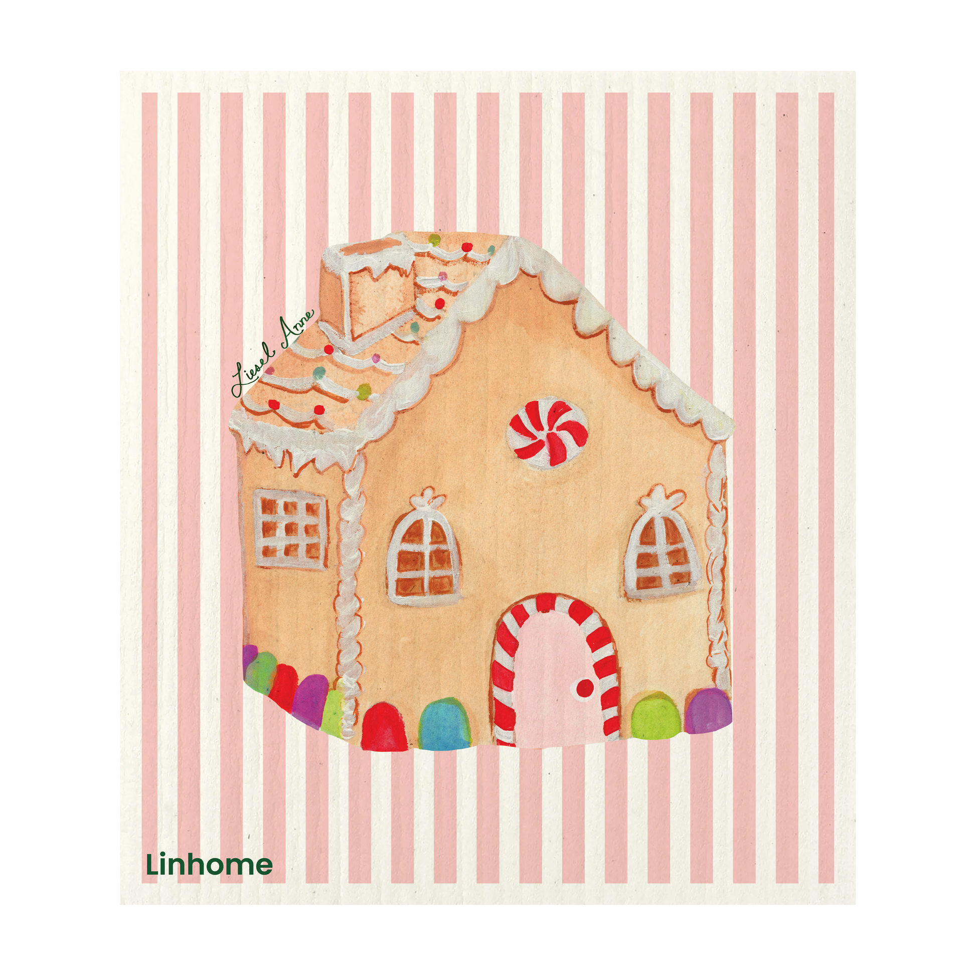 Holiday Classic Collection Gingerbread House Linhome x Liesel Anne Swedish Dishcloths - 1 Pack