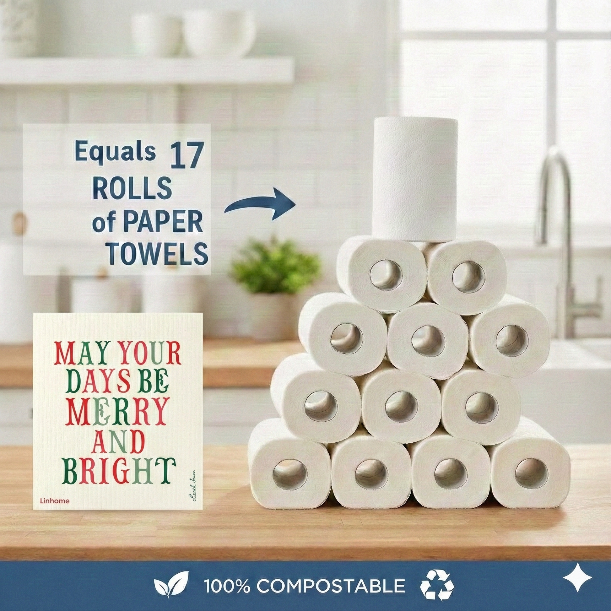 Holiday Classic Collection Merry and Bright- Linhome x Liesel Anne Swedish Dishcloths - 1 Pack