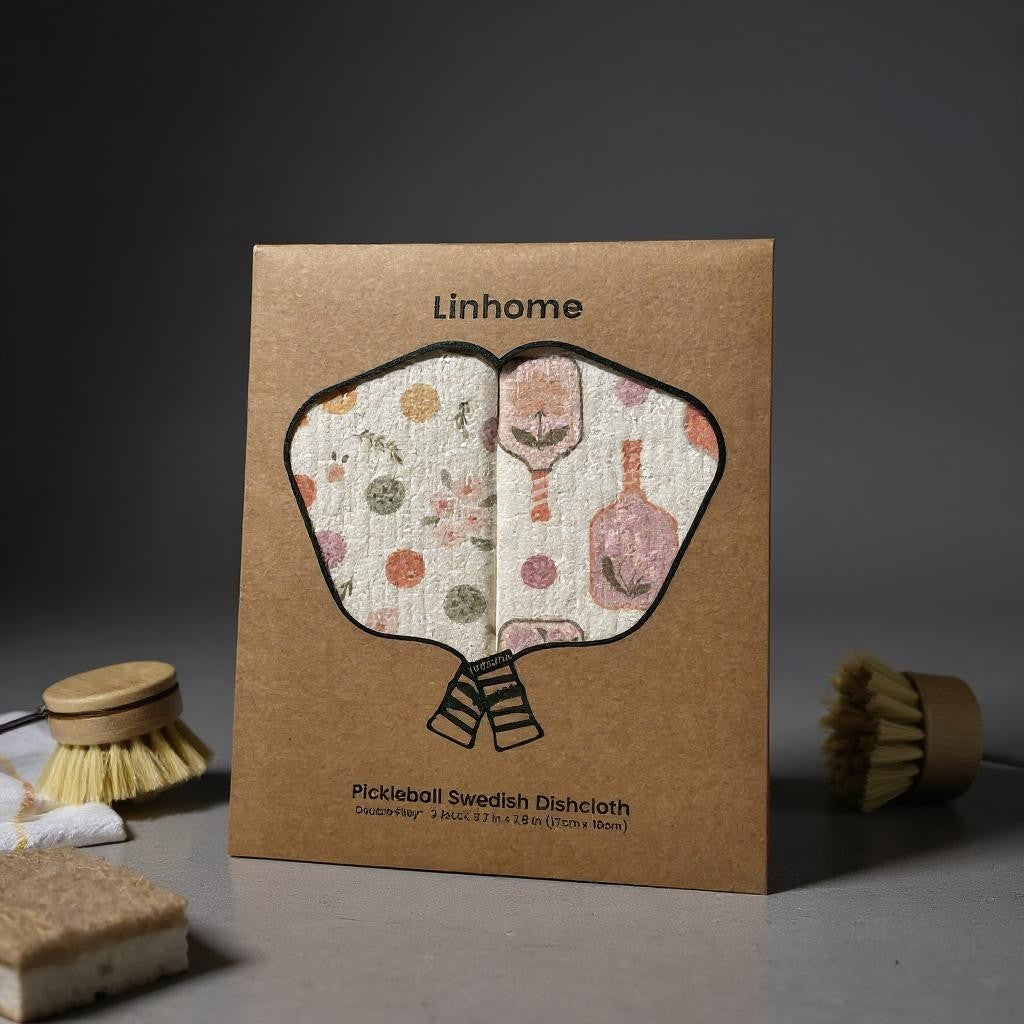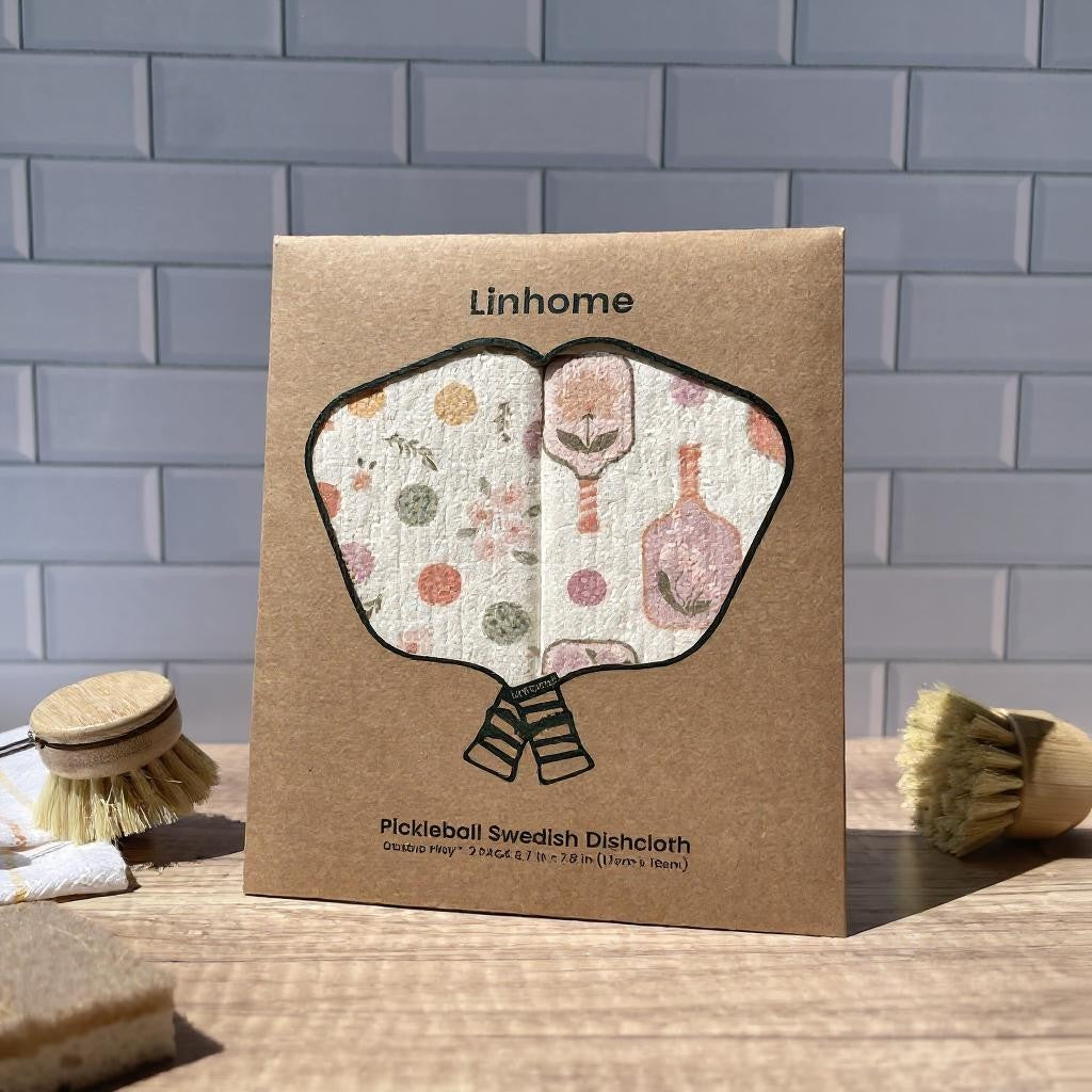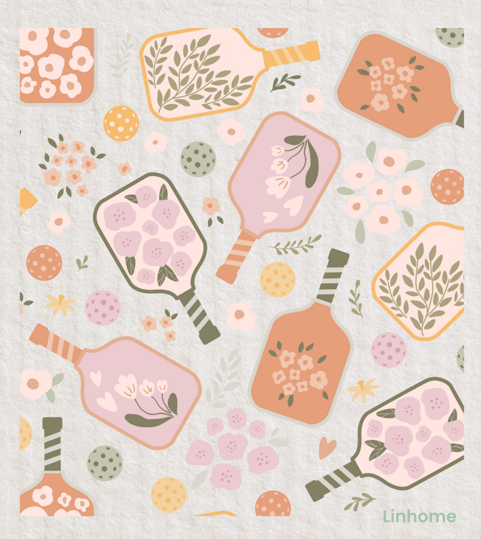 Linhome Pickleball Swedish Dishcloth- Floral Paddle & Ball Club- 2 Pack